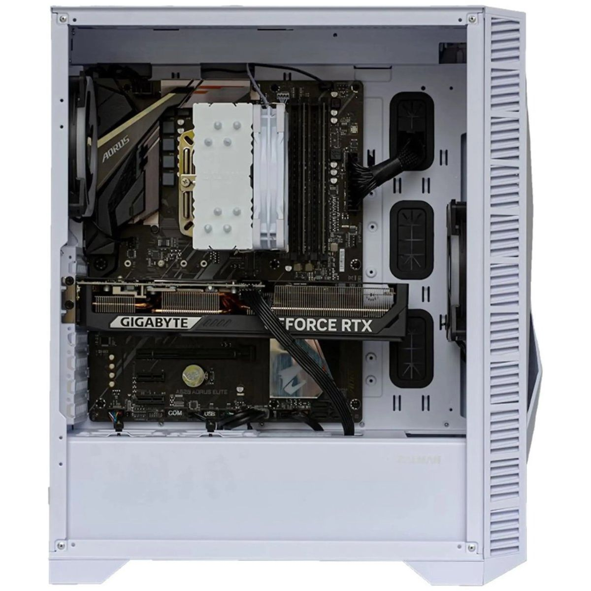 De Iceberg-behuizing heeft een strak, modern ontwerp met RGB-verlichting voor een kleurrijke uitstraling tijdens het gamen. Het doorzichtige glazen zijpaneel biedt een mooi zicht op de interne componenten en de RGB-verlichting. Daarnaast zorgt de geoptimaliseerde luchtstroom ervoor dat de pc koel blijft, zelfs tijdens intensieve sessies.