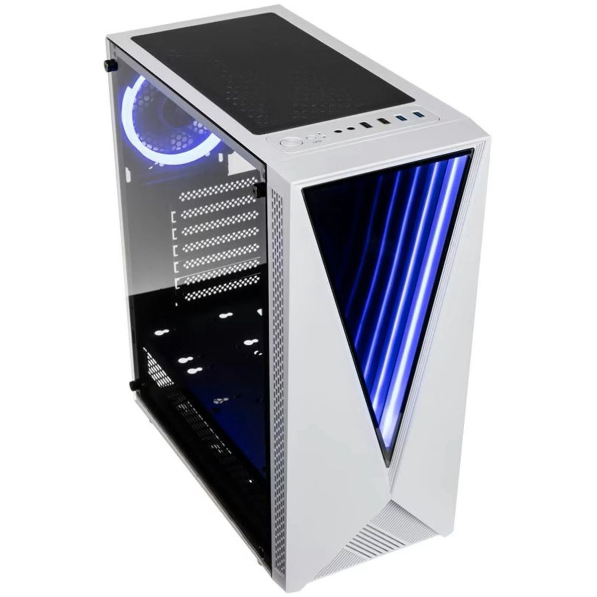 De VOID-behuizing is een visueel opvallende behuizing met een moderne witte afwerking en aanpasbare RGB-verlichting, wat je gaming-setup een unieke uitstraling geeft. Daarnaast biedt de behuizing uitstekende luchtstroom en koeling om de interne componenten koel te houden, zelfs tijdens intensieve sessies.